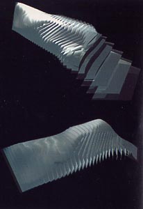 Immagini della digitalizzazione del modello del progetto per l'EMP di F.O. Gehry tramite convertitore FARO.