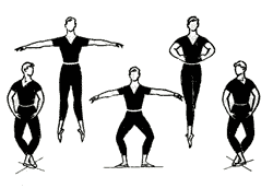 Portare il braccio sinistro in seconda posizione, girare la testa a sinistra e seguire con lo sguardo la mano, contemporaneamente, alzare il braccio destro in terza posizione.