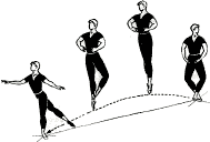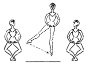 Para ejecutar un demi-plié y lanzar la derecha adentro a continuación con un movimiento deslizado, fuera de separarse del pavimento, hacia el punto 2.