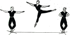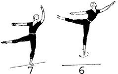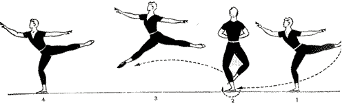 Para acabar el salto en la pierna experta en demi-plié con la izquierda detrás de 90°; la cabeza y los brazos están en el resto del arabesque, de la frente para señalar 3.