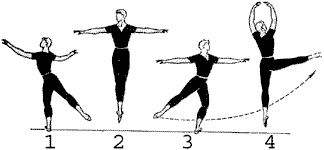 1. En la escuela de Vaganova, después de que suceda el lanzamiento de la pierna adentro a continuación, la vuelta de los medios aguantado, fuera para evidenciar la segunda posición (véase los puntos 3 y 4 de la figura).