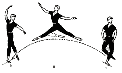 Para diseñar un gran arco a la derecha en el aire, moviéndose, durante el salto, en colmo.