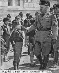 Imbevuto di retorica, il fascismo creò una divisa per ogni italiano, dalla più tenera età fino alla maturità. Marciarono, sfilarono in ogni paese d'Italia, al grido "Viva il Duce!" figli della lupa, piccole italiane, balilla, avanguardisti, giovani fascisti e fasciste, donne e massaie rurali, salutando romanamente, battendo il passo romano.