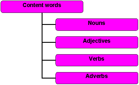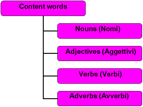Content words sono verbi, sostantivi, aggettivi, avverbi.