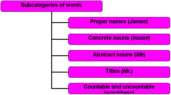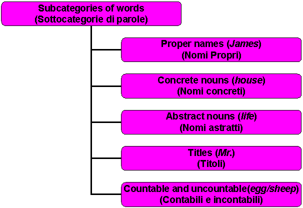 n Possono essere contable\uncontable, concrete\abstract, animate\inanimate