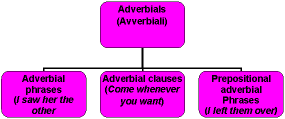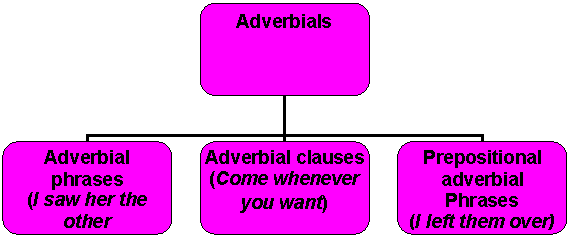 n Adverbs, adverbs phrases and adverbials are often connected to the verb in the main phrase, informing on how, where and when the activity takes place.