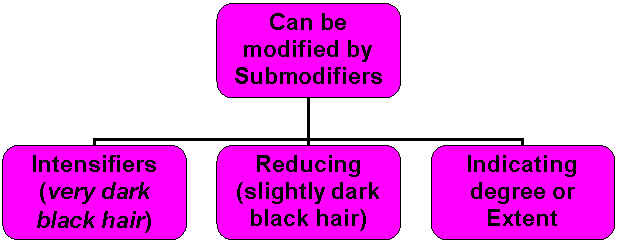 n Adverbs may modify an adjective: they are submodifiers of degree, emphasis, and extent.