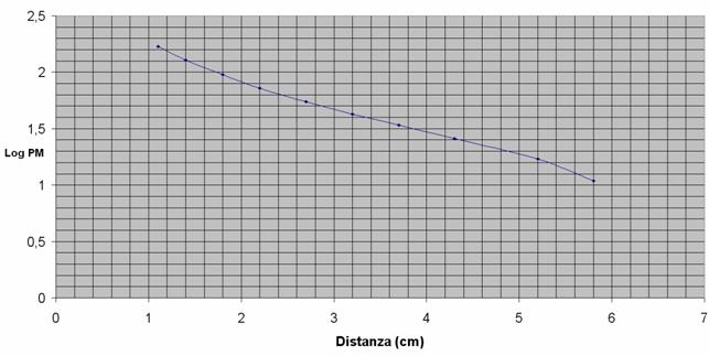 Sull’asse delle ascisse abbiamo messo le distanze in cm tra una banda e l’altra, mentre sull’asse delle ordinate il logaritmo del peso molecolare.