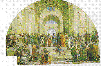 Dall' artistica tensione drammatica della Cacciata di Eliodoro si passa all'equilibrio spaziale e compositivo della Scuola di Atene