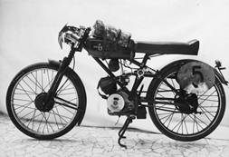 A metà del secondo Campionato Mondiale, un progettista di nome Aldo Farinelli sviluppò un prototipo di motore ausiliario da montare su una bicicletta. Il progetto di Farinelli presentava numerosi vantaggi rispetto alla concorrenza, in particolare il ciclo a quattro tempi e il cambio a due marce che sfruttava appieno la potenza del motore.