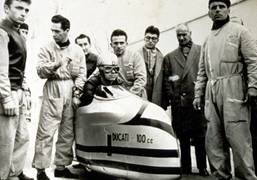 Nel 1954 arriva in Ducati un personaggio destinato a diventare un mito: l'ingegner Fabio Taglioni, "doctor T". Insegnante alla "Tecniche" di Imola, Taglioni ha già realizzato motori dalle caratteristiche tecniche originali e dalle prestazioni sbalorditive. Il disegno Taglioni, ardito e anticonformista, ha il suo battesimo nelle corse. Fin dal debutto in Ducati, Taglioni vuole infatti dimostrare la qualità delle sue soluzioni partecipando alle gare di granfondo come la Milano-Taranto e il Giro d'Italia.