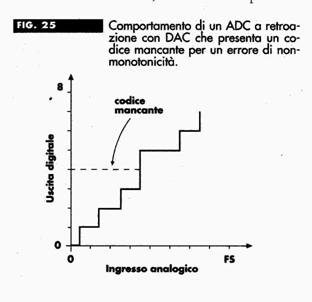 a causa della non linearità del DAC (vedi figura), si ha un codice mancante, infatti se, in corrispondenza di quel codice il DAC fornisce in uscita il livello corrispondente ad un altro codice, il blocco di logica sequenziale non potrà riprodurlo in uscita.