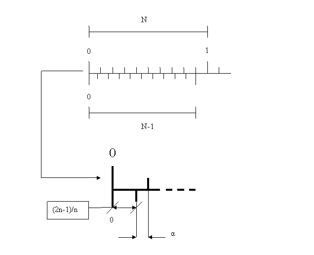 (N-1)/N + α =1